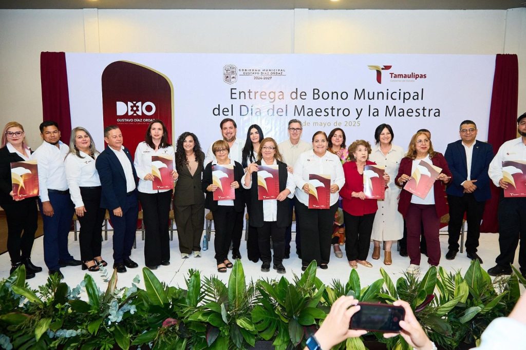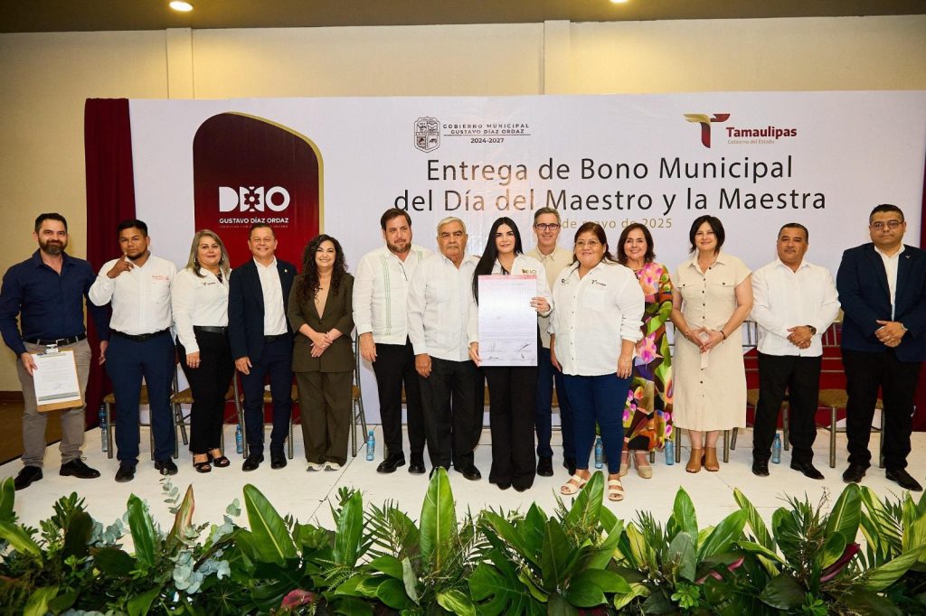Díaz Ordaz, Tam.- En un acto sin precedentes para el municipio, la Alcaldesa Nataly García Díaz presidió un evento histórico en el que, por primera vez, se realizó la entrega del Bono Municipal para Maestras y Maestros con recursos 100% municipales.