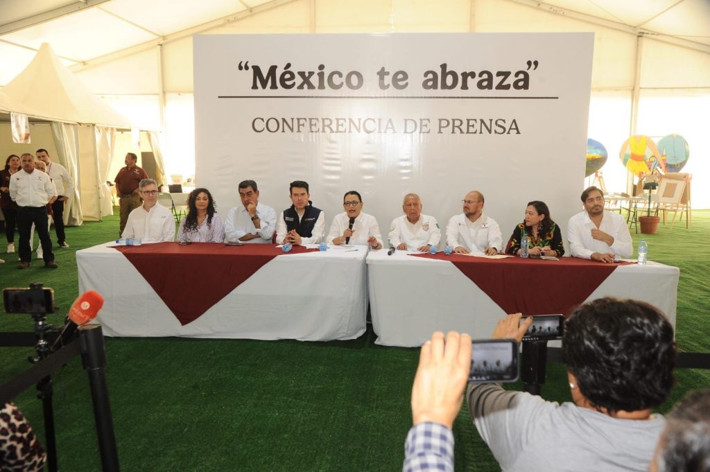 Posteriormente, la funcionaria federal recibió a un grupo de migrantes a los que les explicó detalladamente la estrategia “México te Abraza”, que comprende, entre otros rubros, alimentación, servicios médicos, atención psicológica, una tarjeta con apoyo económico, servicio consular, incorporación a los programas de Bienestar y a fuentes de empleo.