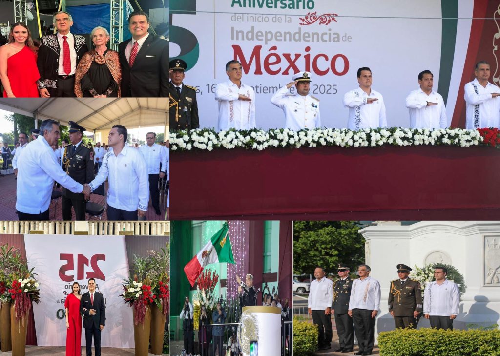 EL presidente de la JUGOB Diputado Humberto Prieto Herrera, junto al mandatario estatal tamaulipeco Dr. Américo Villarreal Anaya, autoridades militares, secretarios estatales, diputados y diputadas, en un acto que lució de manera extraordinaria, “refrendaron su compromiso cívico e histórico”, destacando que, la celebración del 215 aniversario de la Independencia de México, nos motiva y nos deja una huella digna e imborrable, generada por nuestros antepasados que son parte de esa gran historia de nuestro querido México, donde todos trabajamos y luchamos a cabalidad, por la Transformación de nuestro país remarcó el legislador reynosense.